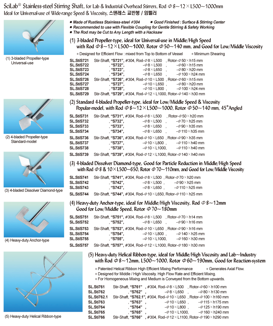 | SL.Sti762 | (Acc.)Heavy-duty Helical Ribbon-type, Stir-Shaft, “S762”, #304, Rod-Φ8×L650 , Rotor-Φ80×h130 mm | ||