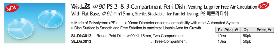 | DM.Dis3013 | Petri Dish, PS, 90 x 15mm, with Three Room | 500/Cs. |