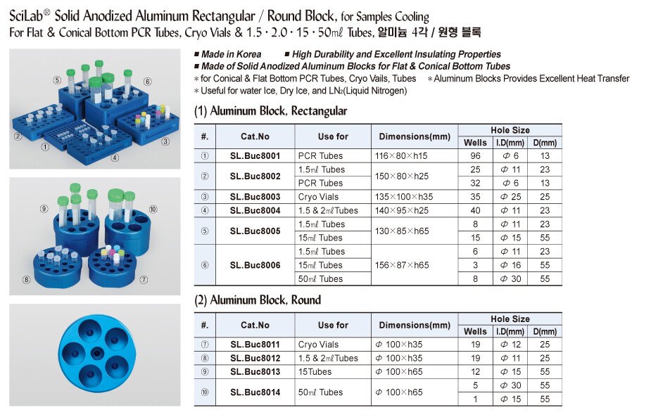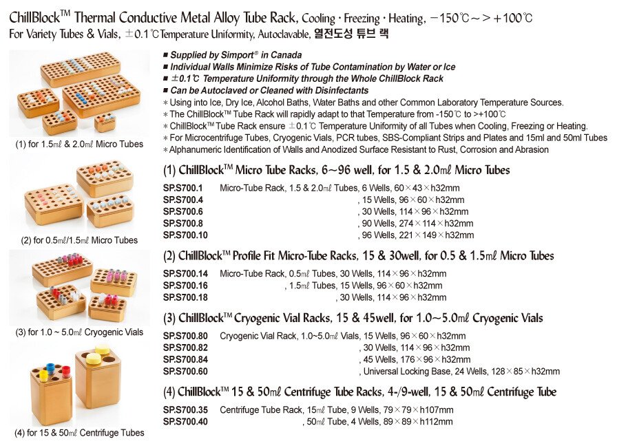 *Giá giữ cho các ống vial, tube kích thước khác nhau như: ống ly tâm, ống vial đông lạnh (cryogenic vial), PCR tube, Strip, plate, 15ml, 50ml