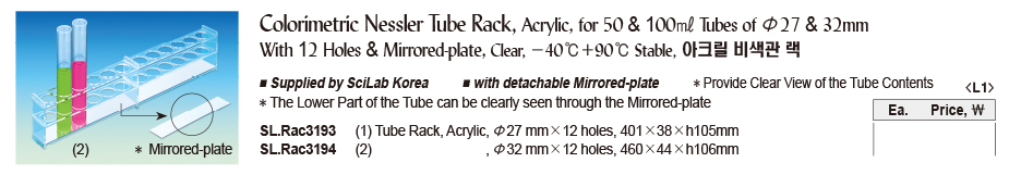 SL.Rac3194 Tube Rack, Acrylic, Φ32 mm×12 holes, 460×44×h106mm