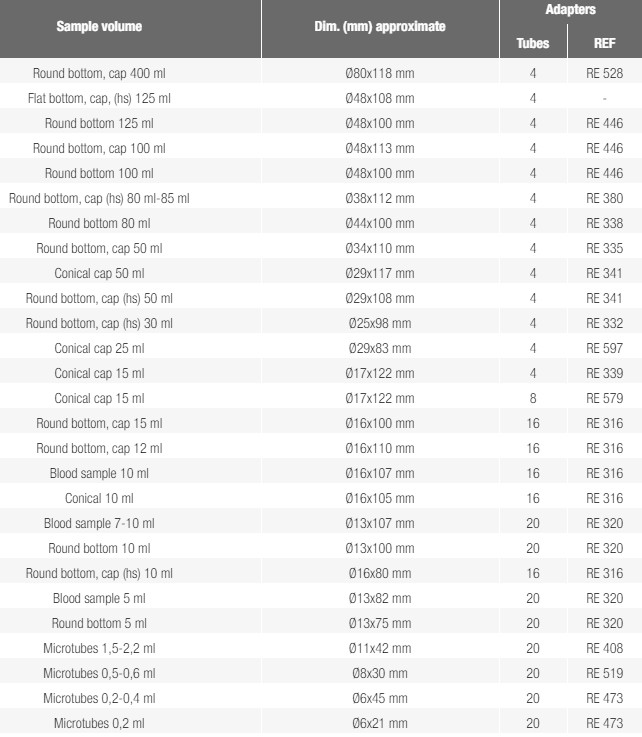 An toàn • Nắp được cung cấp với hệ thống bảo mật: - Hệ thống khóa nắp tự động, cơ giới với khóa kép. - Nắp khóa mở khẩn cấp. - Khóa và bảo vệ chống mở dọc đường chạy. - Bảo vệ chống rơi nắp. - Cổng vào nắp để hiệu chuẩn và kiểm tra hoạt động. • Phát hiện mất cân bằng và tắt. • Vòng bảo vệ an toàn giữa buồng ly tâm và vỏ. • Buồng ly tâm bằng thép không gỉ (dễ vệ sinh). • Các cánh quạt có thể được tháo ra khi đóng nắp. Nắp kín. • Rotor và bộ điều hợp có thể khử trùng được, người dùng dễ dàng lắp đặt. • Thông gió cưỡng bức để giảm nhiệt độ tăng. • Tự động ngắt để tiết kiệm năng lượng lên đến 8 giờ, với tùy chọn hủy kích hoạt. Chọn thêm RT 138 Rotor: Swing out