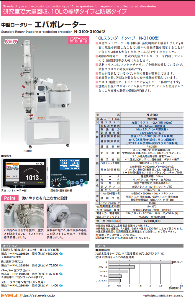 THIẾT BỊ CÔ QUAY CHÂN KHÔNG 10 LIT Model N-3100