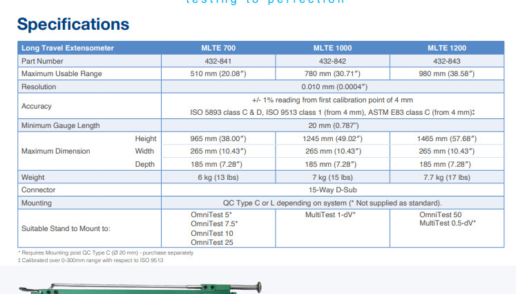 Thước đo độ giãn dài hành trình MLTE 700 được thiết kế để sử dụng với các hệ thống kiểm tra Mecmesin khi chạy phần mềm kiểm tra vật liệu VectorPro MT.